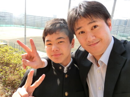 [塾生が塾長:村上の母校に合格した際、普段は写るのを嫌がる村上も歓びで2Shotしました 笑]