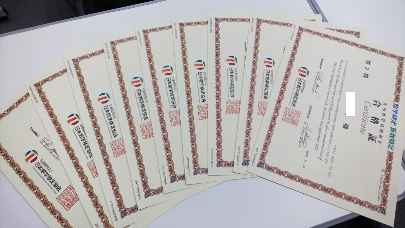 数検の結果も出て、賞状も送付されてきました。小学生の上の学年級の「飛び級合格」が今回は目立ちます。スーパーキッズプロジェクトもみんな下級生から始めているため、まだまだ上級生を輩出できない年月が続きますが、少しずつ確実に芽が出始めています。