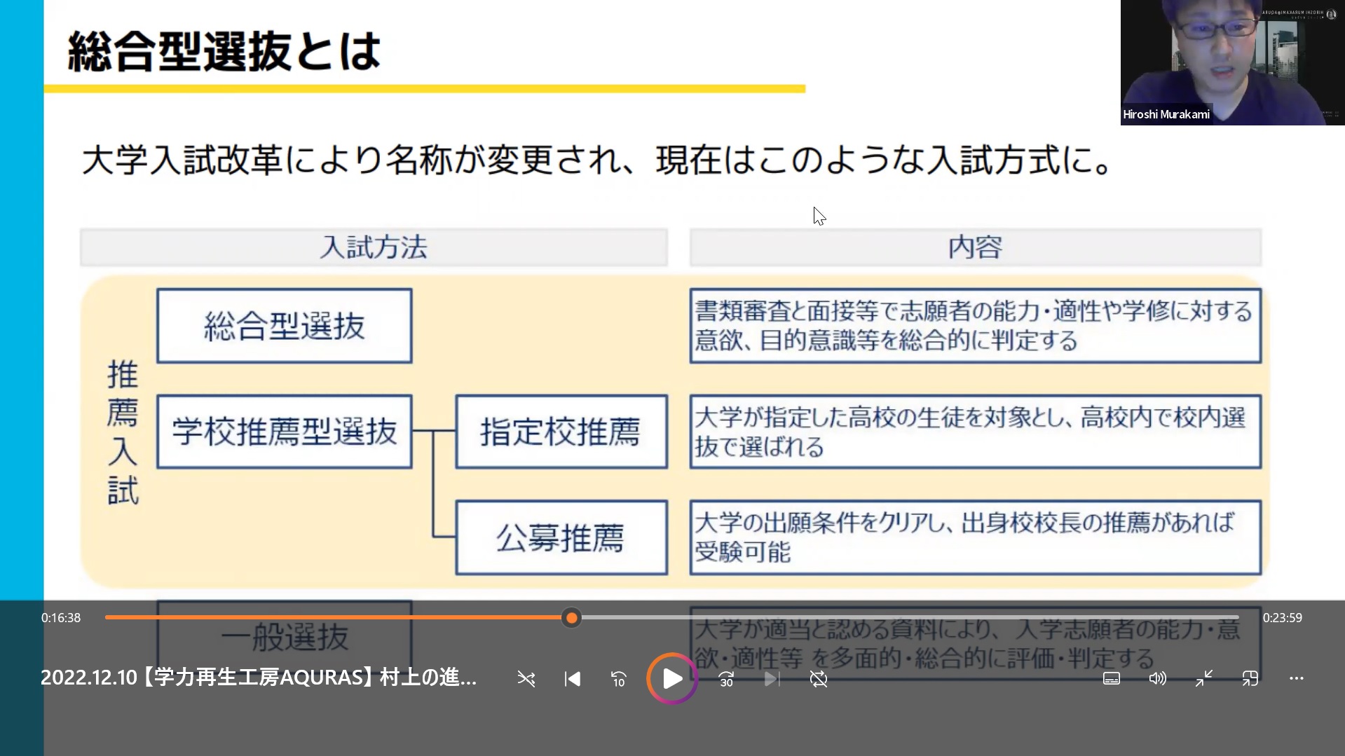 昨日は塾生の親御さん対象に村上の進路指導セミナー「今さら聞けない…大学入試の総合型選抜って?」の話をオンラインにて開講しました。