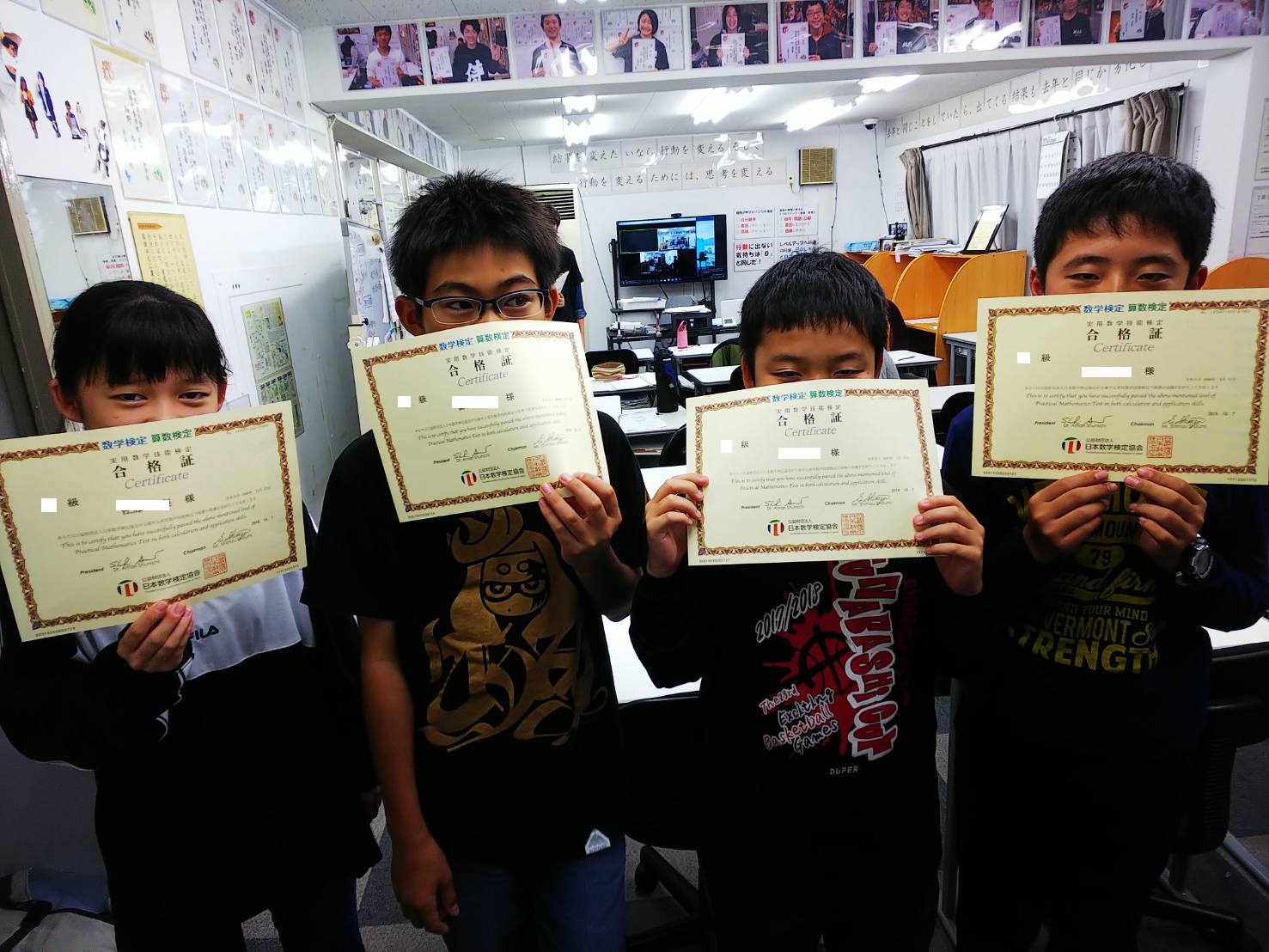 数検は合格証書や賞状も届いたので、飛び級で合格した塾生たちは、もちろん大喜びです。
