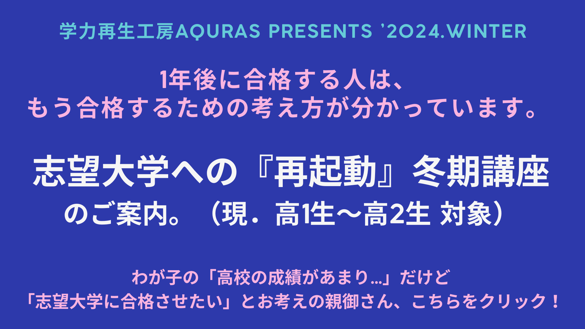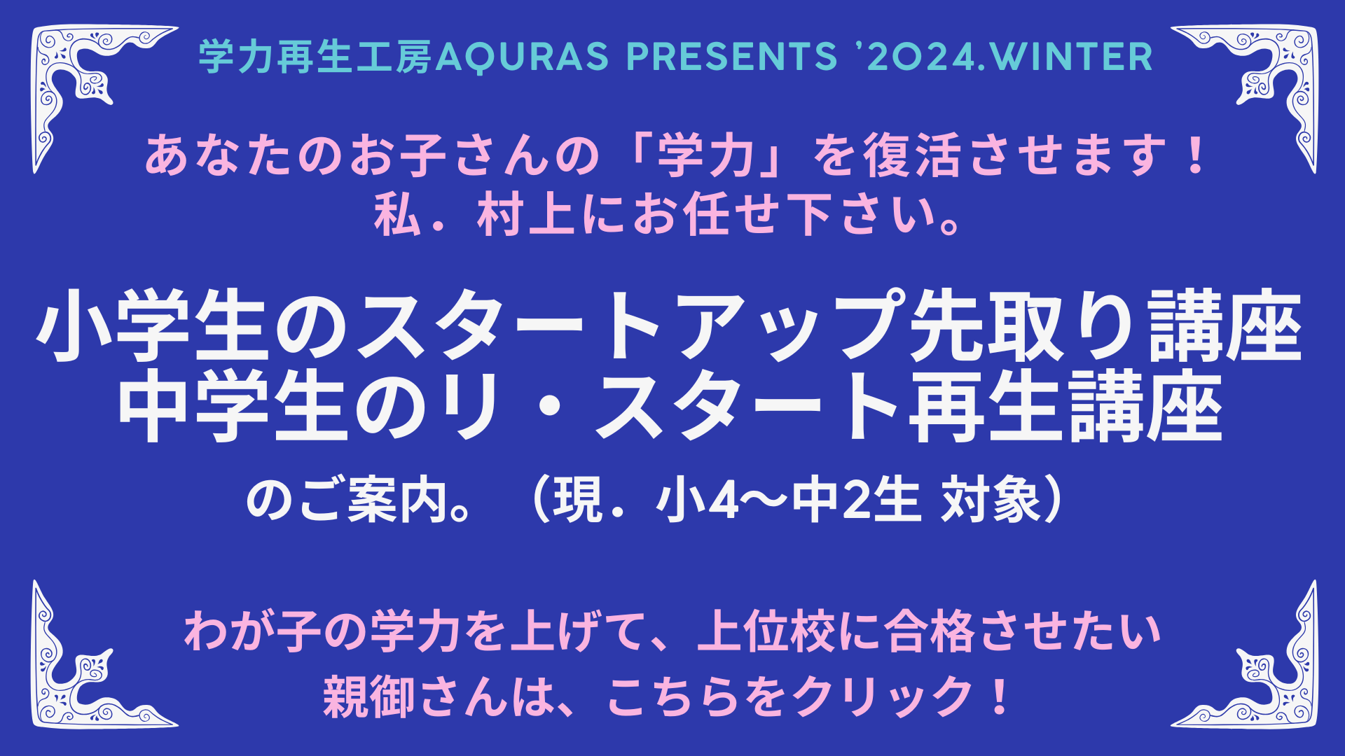 西船橋・稲毛の『自己管理力を鍛えて結果の出せる子に育てる』学習塾:学力再生工房AQURASの村上です。