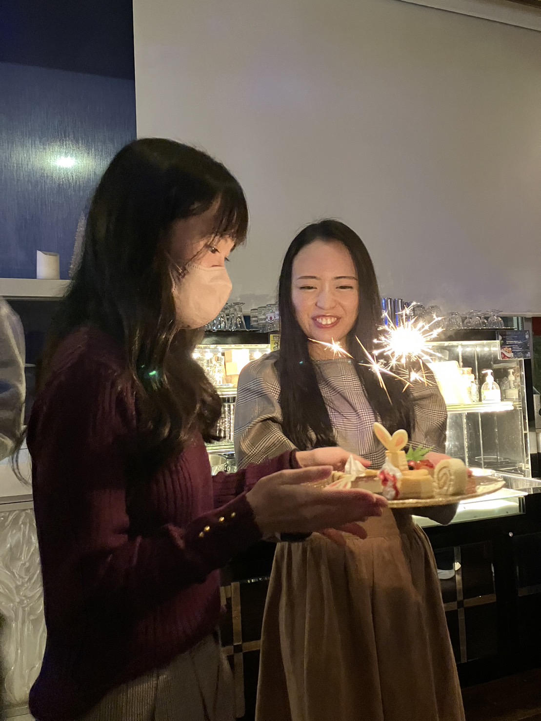 で、たまたま教務スタッフたちの業務MTGの後に忘年会が入っていたので、たまたまのタイミングで参加してくれたので(笑)、教務スタッフみんなでお祝いした流れですかね。
