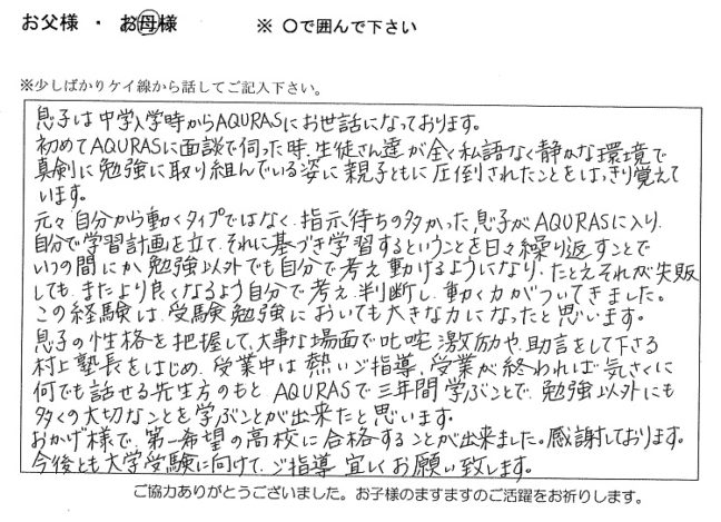 AQURASで「合格」を勝ち取ったお子さんはもちろん、親御さんの喜びも大きいです。
