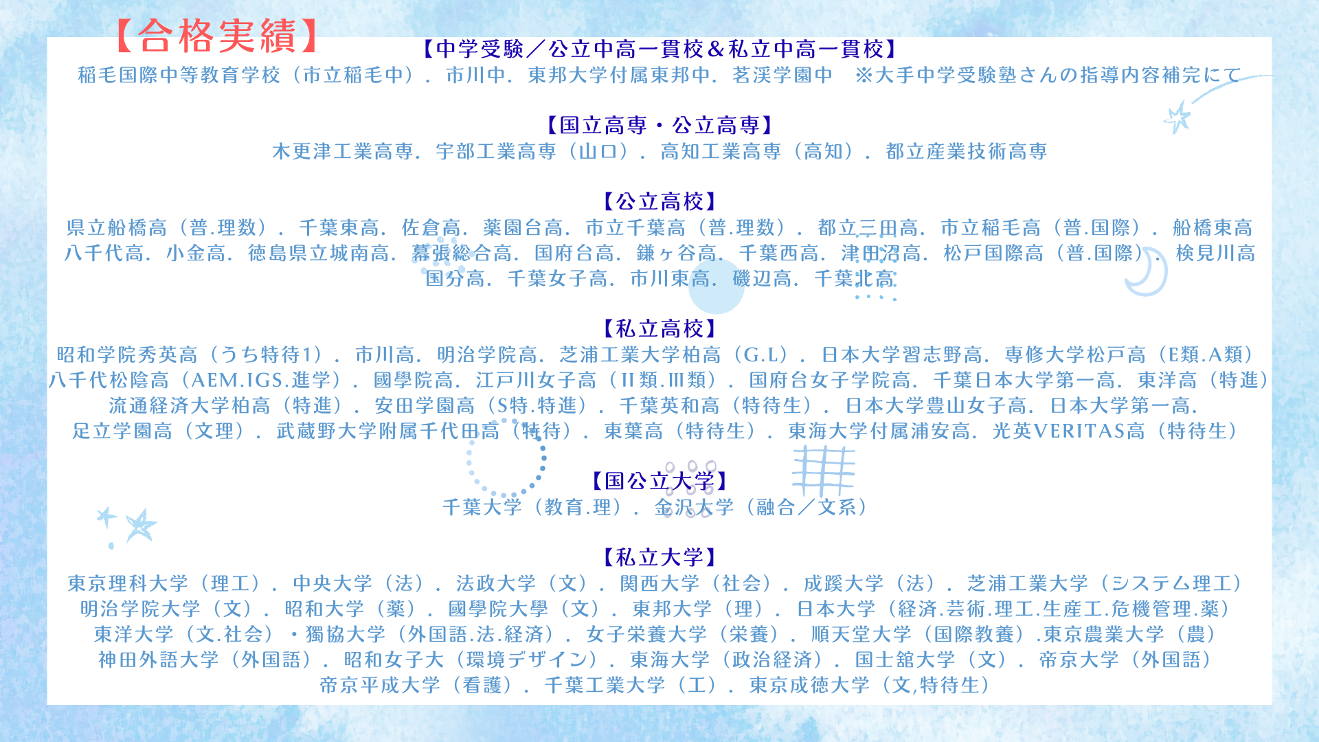 ※合格実績の画像をクリックすると拡大画像で見れます↓